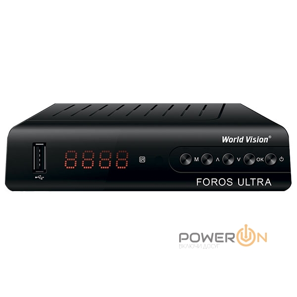 Новый цифровой комбинированный приемник World Vision Foros Ultra. Продолжение модельного ряда World Vision Foros, в новой модели Ultra установлен сетевой порт LAN для подключения проводной сети интернет. Цифровой ресивер базируется на процессоре GX6605, поддерживает прием спутниковых каналов в стандарте DVB-S/S2, в том числе транспондеров T2-MI транслирующихся для сетей наземного цифрового телевидения, также вторым эфирно-кабельным тюнером в корпусе поддерживается прием цифровых эфирных каналов в стандарте DVB-T/T2 и кабельных в стандарте DVB-C. Для быстрой инсталляции спутниковой антенны и ресивера, поддерживается настройка через приложение DVBFinder устанавливаемое на смартфон с Android OS. Ресивер поддерживает подключение к беспроводной сети интернет через внешний USB Wi-Fi адаптер на чипе Ralink RT5370, Ralink RT3370, Ralink RT3070 и Mediatek 7601, благодаря этому расширяются функции и становятся доступны: IPTV плеер, видеосервисы YouTube и MEGOGO, Погода. Корпус ресивера оснастили всего одним USB разъёмом стандарта 2.0, четырехзначным семисегментным LED дисплеем, на лицевую панель выведены основные органы управления кнопки POWER, MENU, CH+/-, OK, подключение аудио-видео сигнала организовано через композитный и HDMI выход, блок питания внешний напряжением 12В.