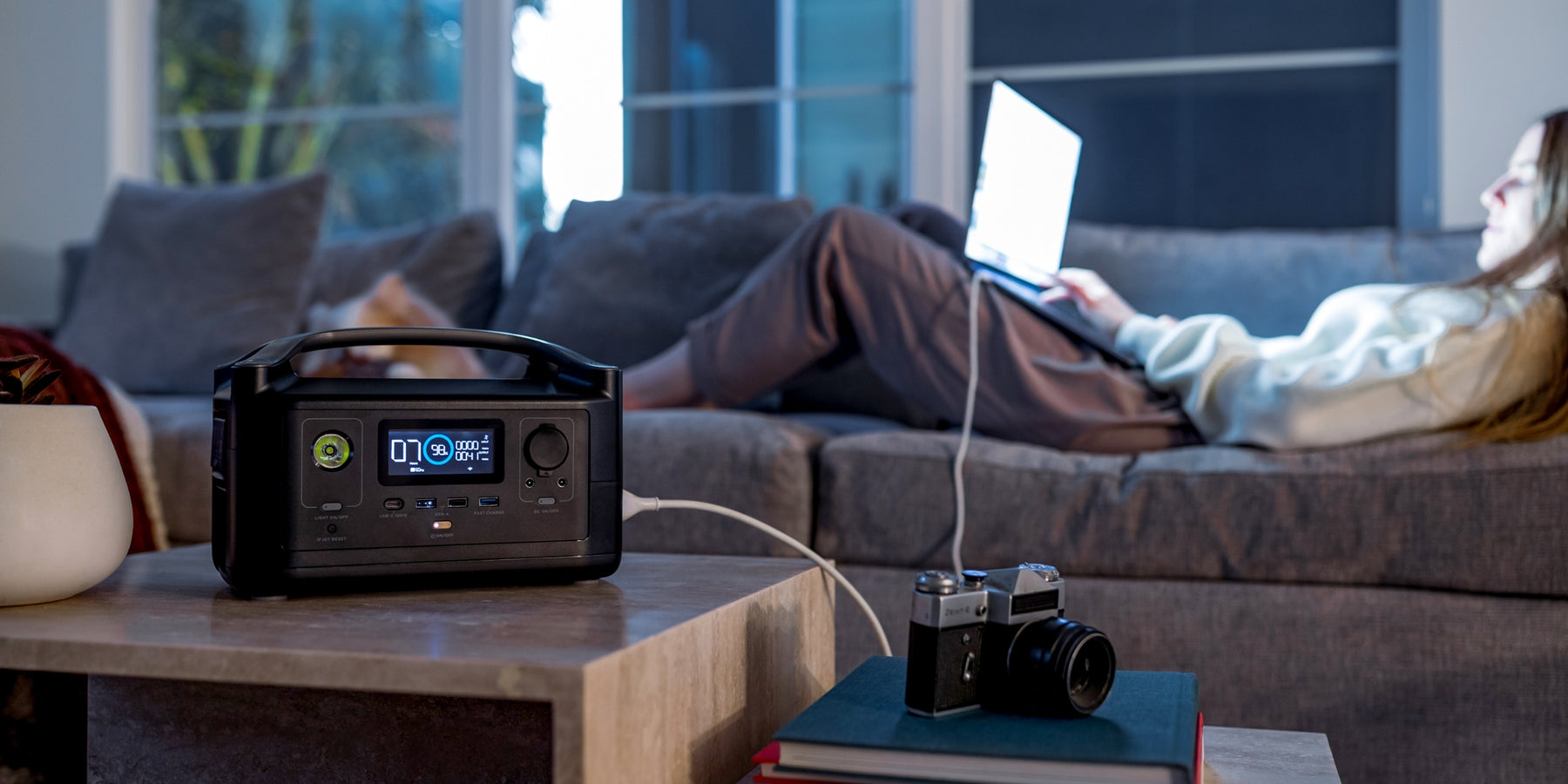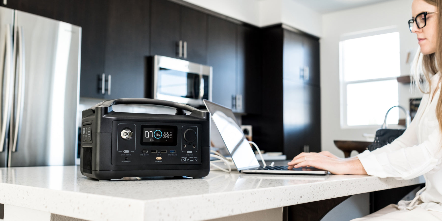 Вирушайте на природу з RIVER і тримайте всі свої пристрої увімкненими одночасно. Завдяки ємності 288 Вт·год, яка повністю заряджається за рекордні 96 хвилин, ви зможете з легкістю зосередитися на своїх пригодах.